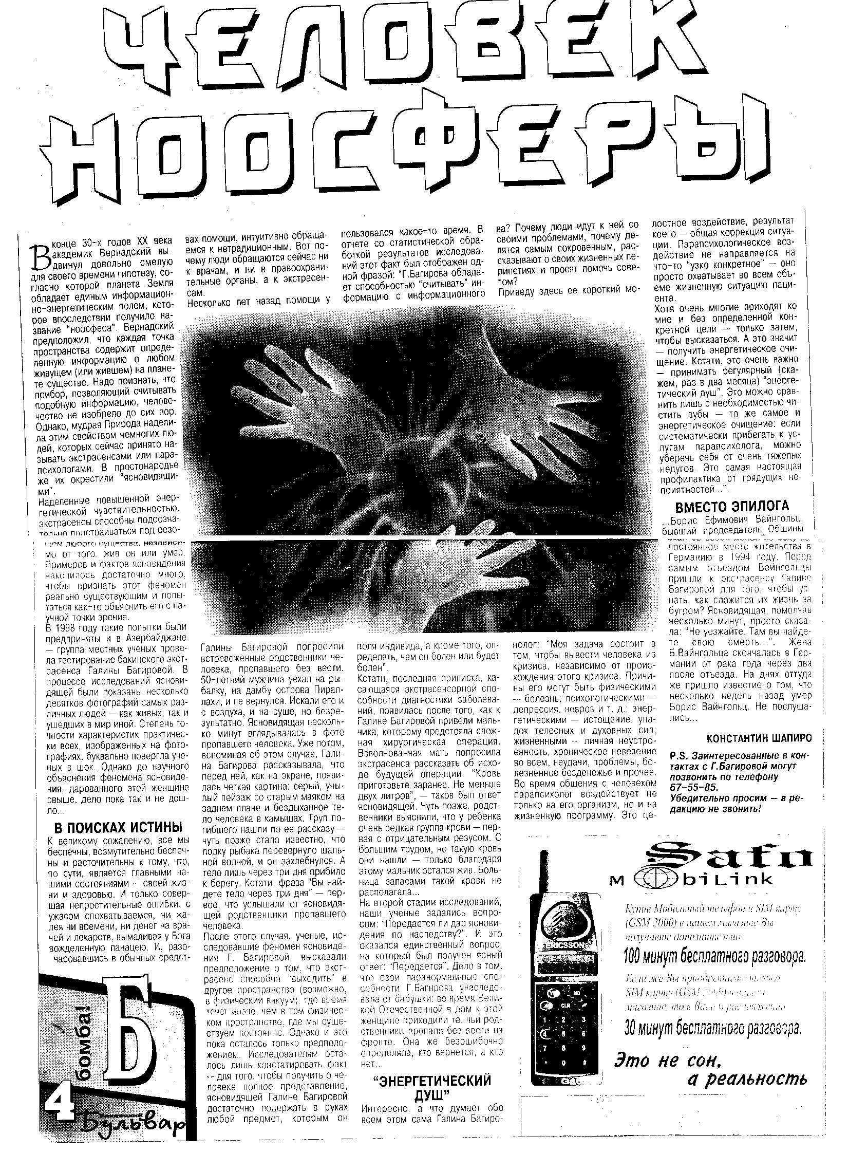 "Ясновидение можно сравнить с Интернетом, даешь поиск и находишь ответ"