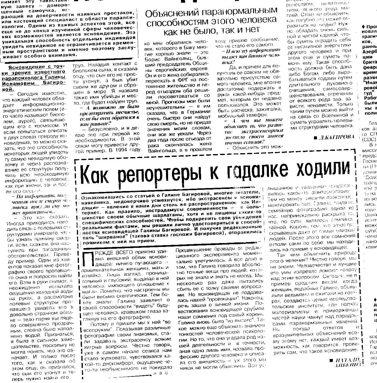 Интервью с Галиной Багировой в журнале Линия Судьбы