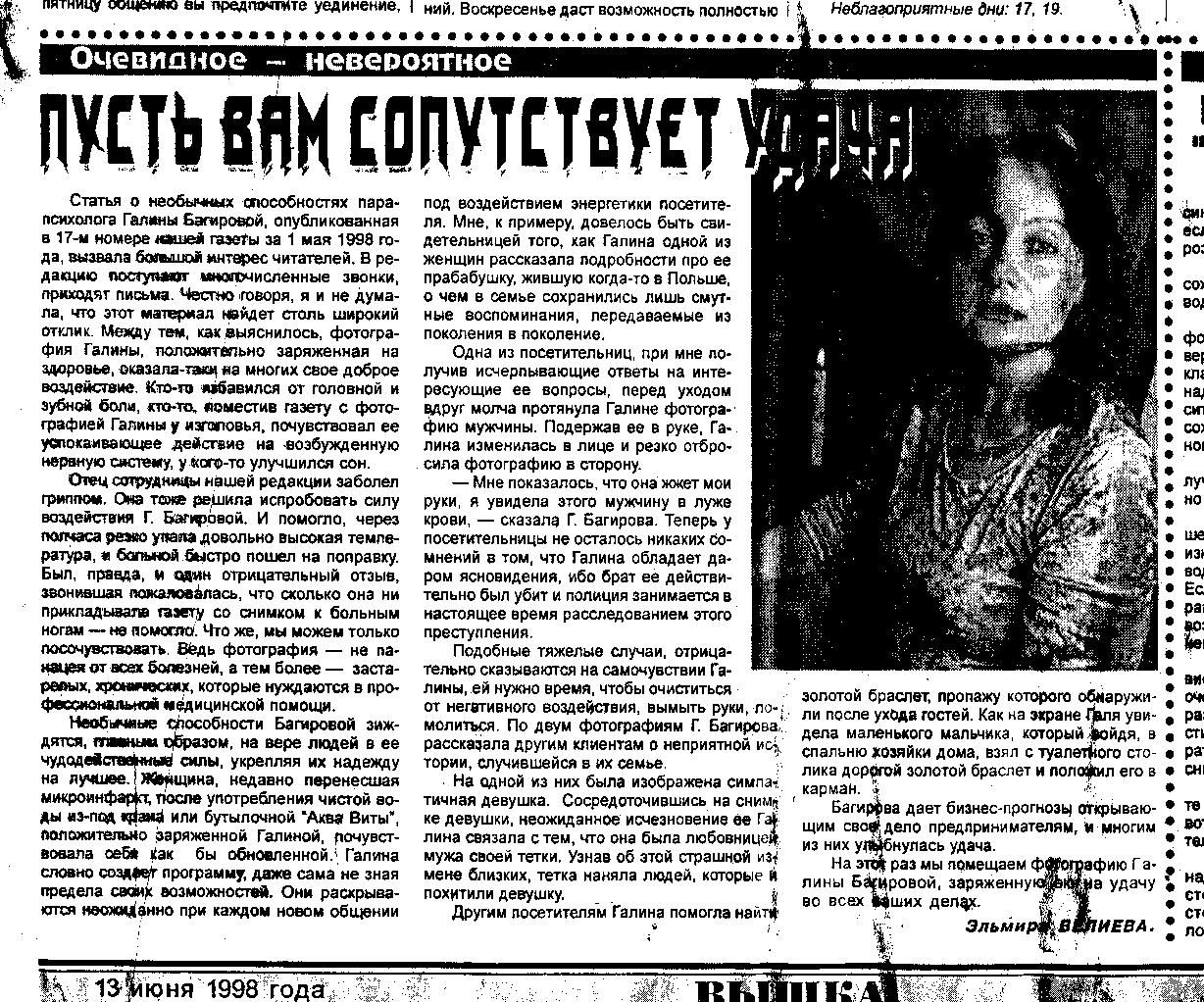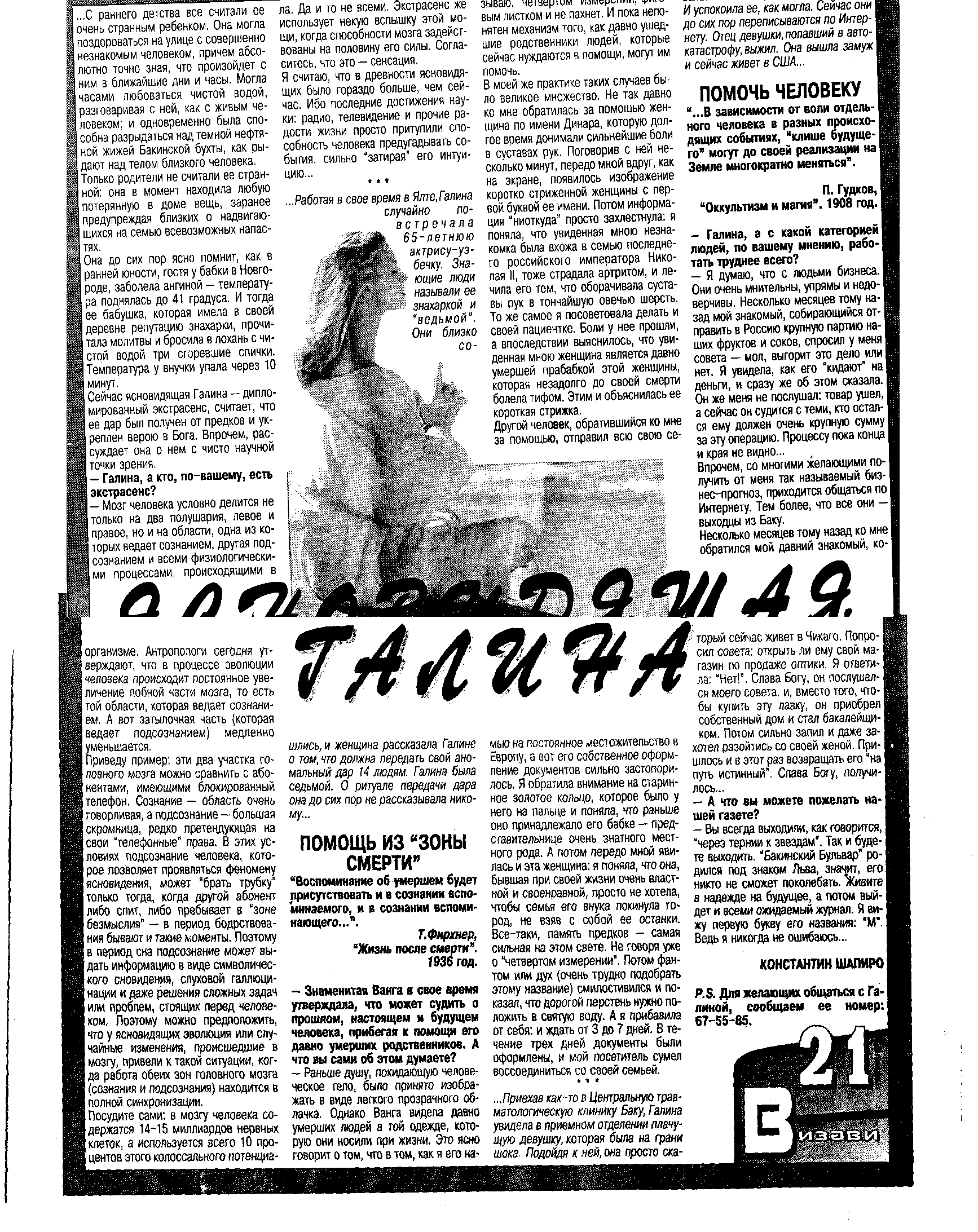 Интервью с Галиной Багировой в журнале Линия Судьбы